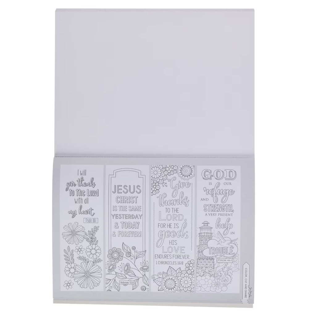 128 perforated pages are filled with line drawings based on the wisdom of Scripture. In addition to the full-page line drawings, 6 bookmarks, and 8 small and 6 large cards are included for you to color, cut out, and share.