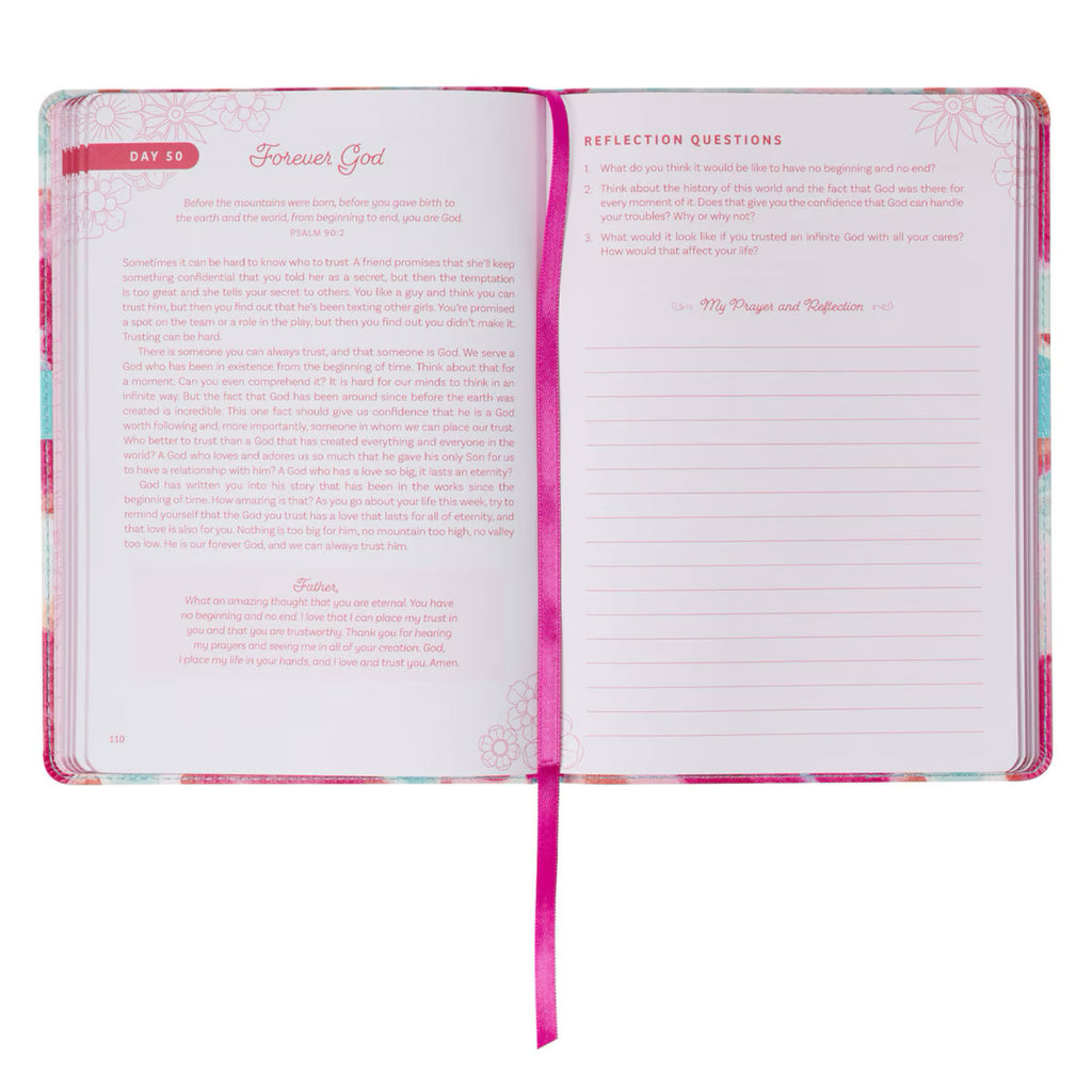 The Moments with God for Teen Girls Pink Floral Devotional can help teenage girls grow closer to God and look to His Word for the answers to life.